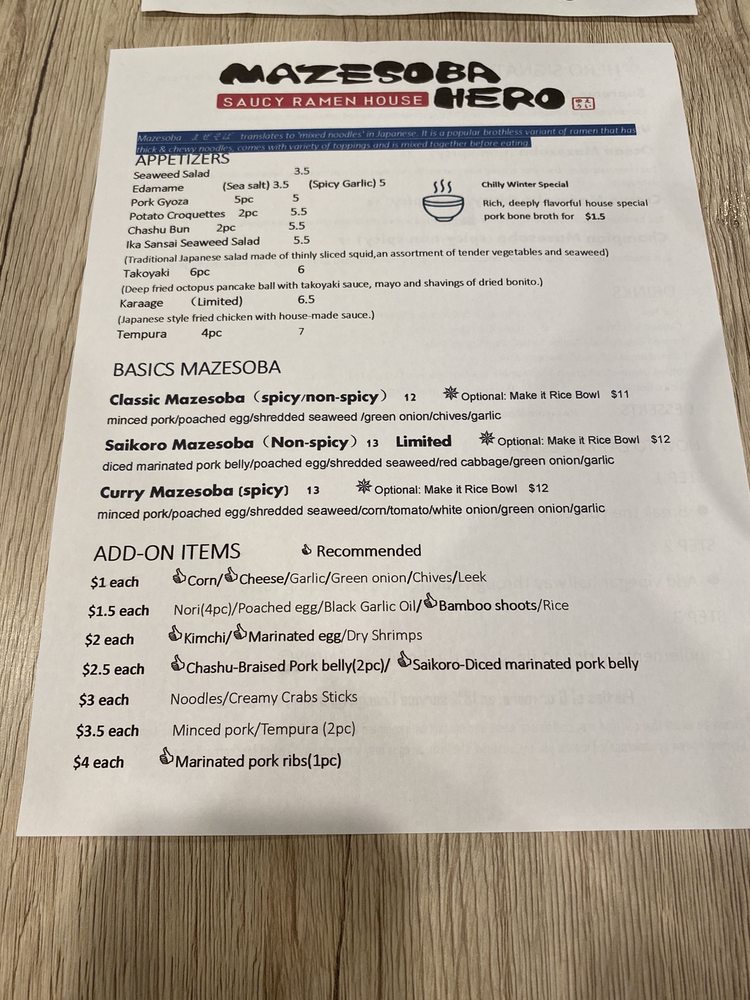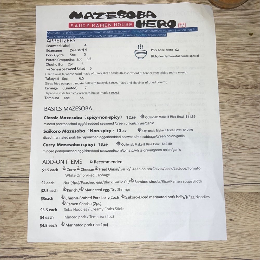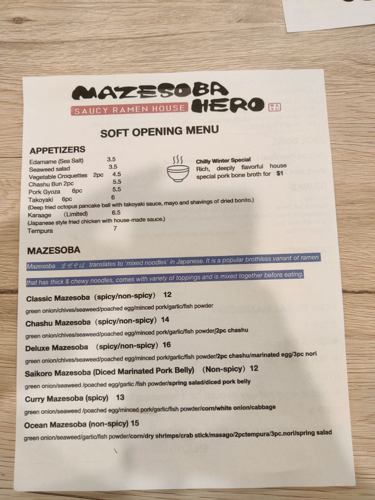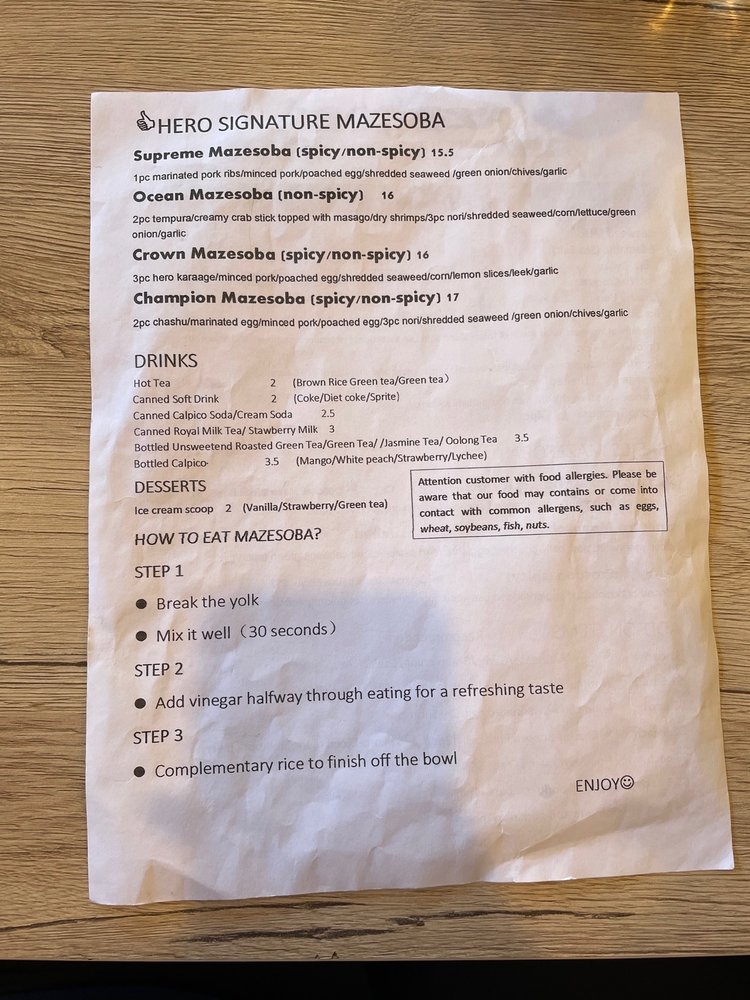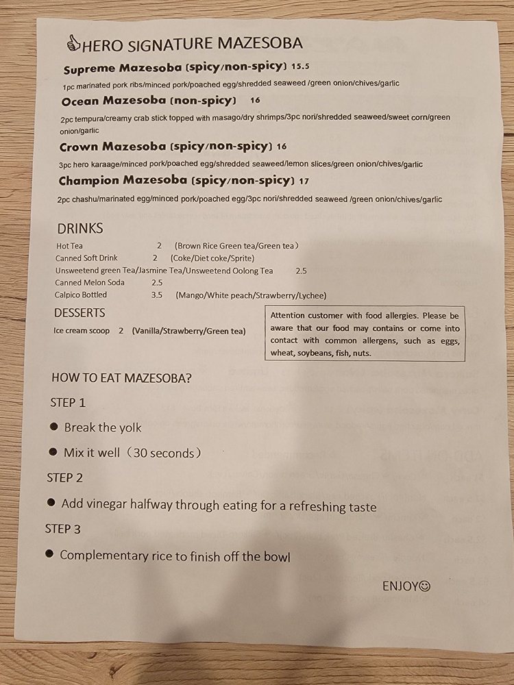 Mazesoba Hero Menu